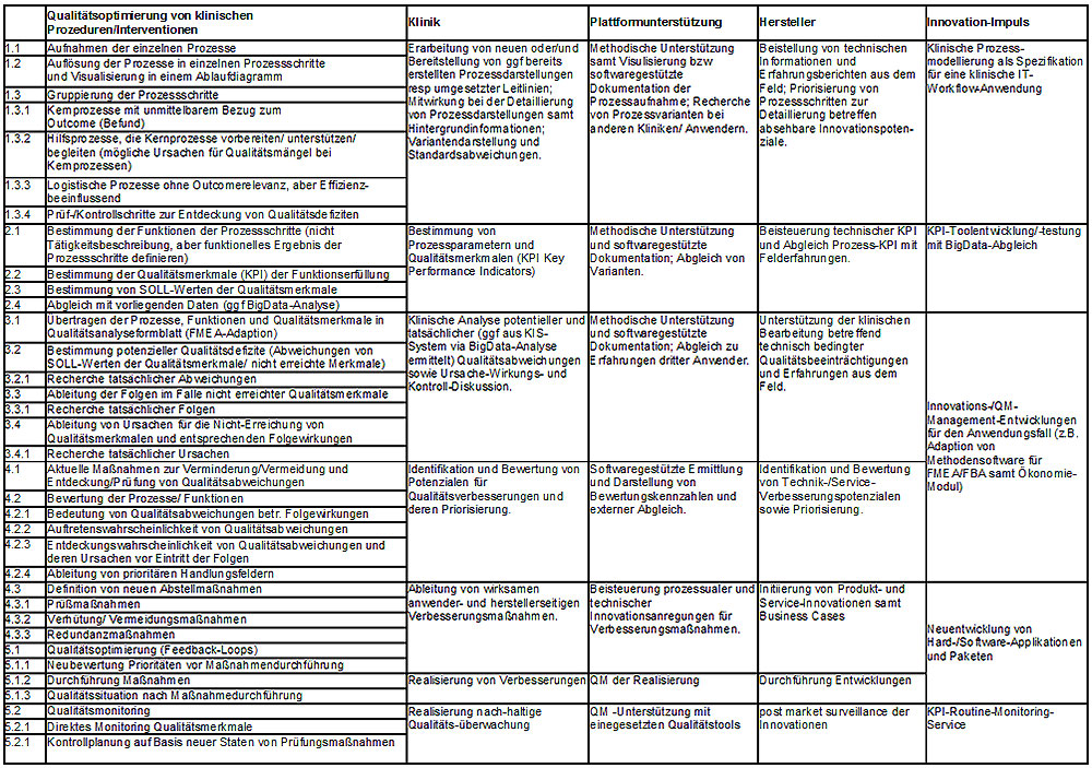 Das methodische Vorgehen unterstützt die klinischen Arbeitspakete Bedarfsermittlung und Prozedur-/Konzeptentwicklung einerseits, sowie die frühen Planungsphasen von industriellen Medizinprodukteentwicklungen.